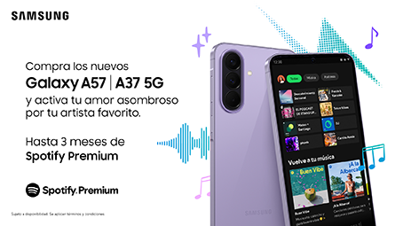 San Salvador, El Salvador – 23 de abril de 2026 – Samsung anuncia una alianza con Spotify, la plataforma de streaming musical más grande del mundo, en una colaboración en América Latina que ofrece hasta tres meses de Spotify Premium para los consumidores que adquieran los nuevos Galaxy A57, Galaxy A37, Galaxy A1 y Galaxy A07, colocando la música en el centro de la experiencia de la nueva línea Galaxy A. Spotify Premium garantiza acceso a música sin anuncios, descargas para escuchar offline y más libertad para elegir qué escuchar en cualquier momento.